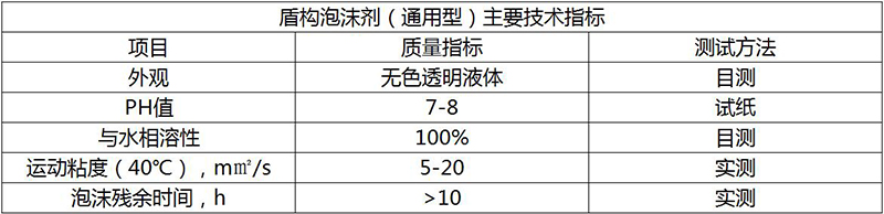 盾構(gòu)泡沫劑(通用型)產(chǎn)品性能: